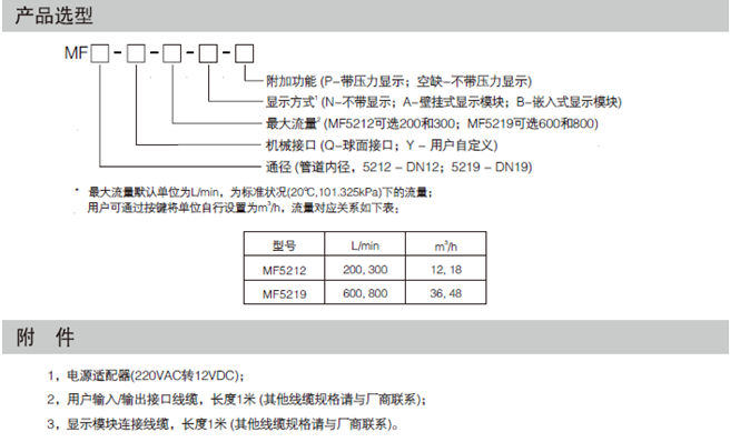 MF5219氣體質量流量計(ji)産品選型: